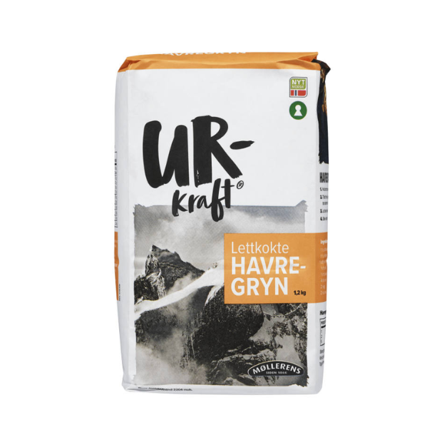 Description: Urkraft from Møllerens is a range of natural products based on ancient oat grains. The products provide long-lasting energy so you can enjoy a productive day. These quick-cooking oats are perfect with milk, for porridge, or for baking.