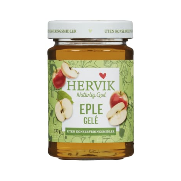 The jelly is made from raw juice from fresh Norwegian garden apples. A piece of cheese with apple jelly tastes heavenly, is indispensable on waffles, and piquant with game meat. Try it as a spread or on your breakfast cereal. The apple fruit originally comes from Asia. In Norway, it was the monks who started fruit cultivation, first in Hardanger. There are thousands of different apple varieties in the world. The juicy varieties grown in Norway are the result of good breeding. Apples contain vitamin C and dietary fiber. Natural ingredients taste best.