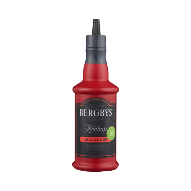 Reduced-sugar ketchup made with 71% tomato puree, offering the classic Bergbys taste with less sugar. Perfect for burgers, hot dogs, fries, and everyday meals.
