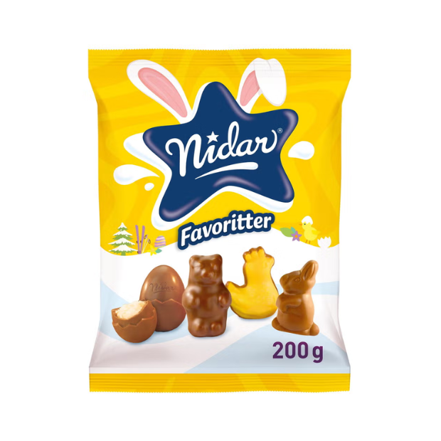 Ingredients: Sugar, Almonds (24%), cocoa mass, humectant (sorbitols), cocoa butter, glucose syrup, milk fat, emulsifier (soy lecithins), stabilizer (invertase), natural vanilla flavor, skimmed milk powder.